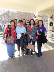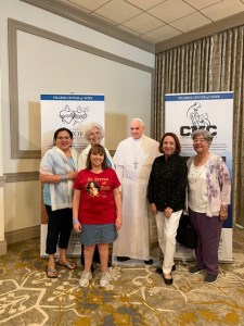Court St. Helena of the Cross #2679 in San Antonio attends the Catholic Women’s Conference presented by the Pilgrim Center of Hope. With the theme of “Women of Hope,” the speakers presented enlightening talks at this two-day conference. Posing with a cardboard cut-out of Pope Francis, in left to right order: Diana Becerra, Alma Algermissen, Megan Rothe, Yolanda DeLeon and Shirley Black.